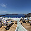 • Royal Suite con jacuzzi esterna - La nostra Royal Suite con jacuzzi esterna è uno dei luoghi più esclusivi e privati in cui soggiornare: a picco sulle scogliere della caldera. Si compone di 2 camere da letto principali, ognuna con bagno privato, un ampio soggiorno abbellito da rare e sofisticate opere d'arte, e 2 comodi divani letto che possono ospitare altre 2 persone. Cucina separata con tutte le attrezzature necessarie, lavanderia con lavatrice e asciugatrice e una stanza in più per domestica/baby-sitter. Il "gioiello" di questa suite è il grande, quasi 50 metri quadrati, terrazzo privato con lettini, tavolo da pranzo e sedie, ed offre privacy e vista illimitata sul famoso vulcano, sul tramonto, sulla caldera e sull'intera isola di fronte ai vostri occhi! Servizi VIP sono disponibili su richiesta.