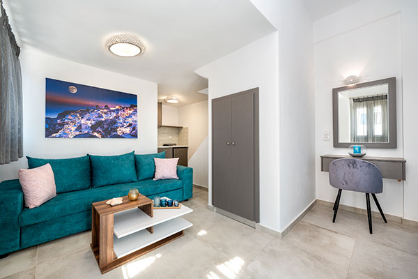 Consiste di appartamenti, monolocali/studios e maisonettes su due livelli, che sono stati recentemente rinnovati sempre nel rispetto dello stile cicladico, con uno sguardo attento alle esigenze e comfort della clientela.